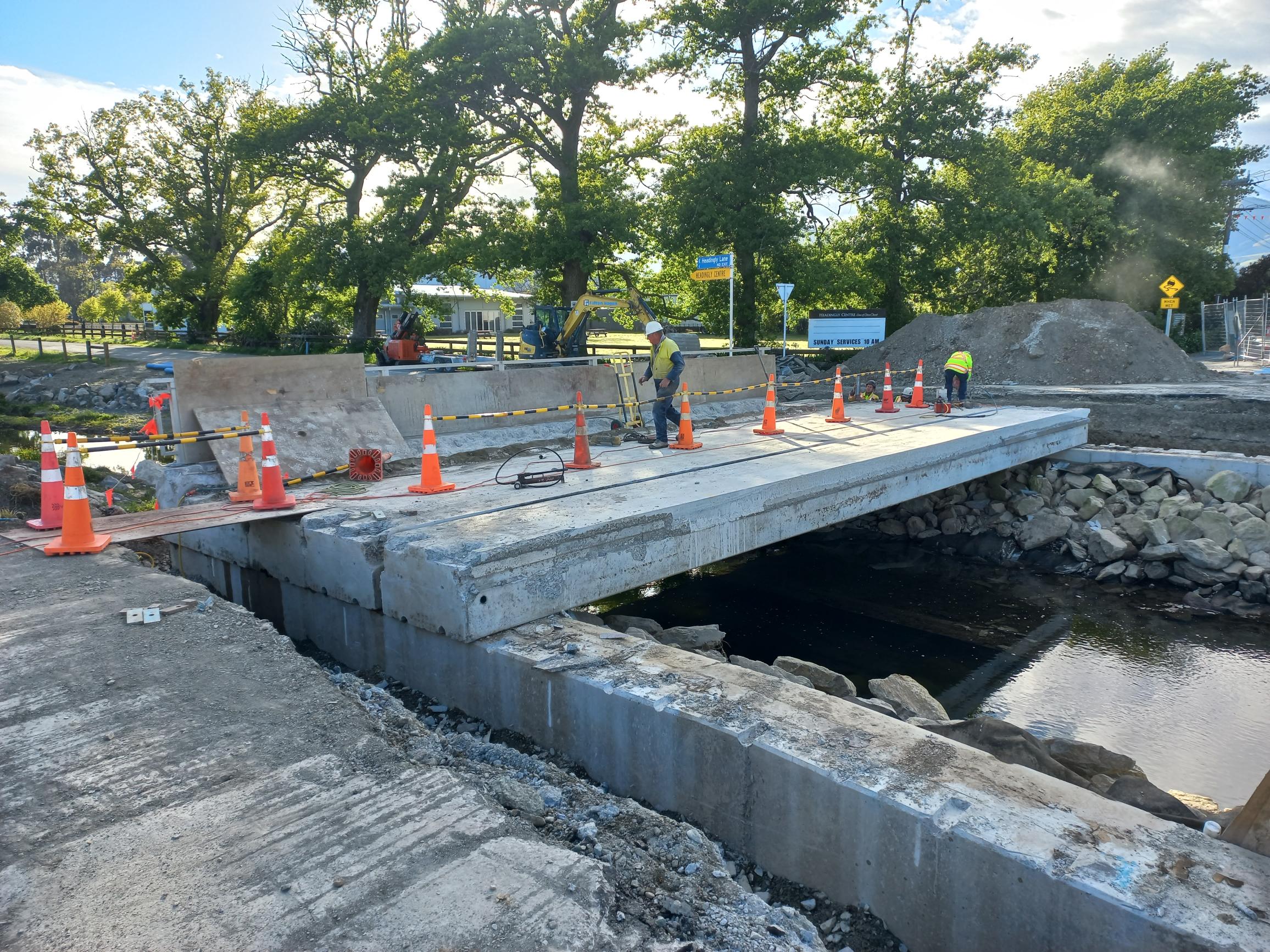 The Borck Creek development is a long-term project. Currently this small bridge creates a bottle neck in this part of the stormwater network. The new longer bridge is vital to ensure large volumes of accumulated water can easily and quickly flow out into the Waimea Estuary in a large flood.
